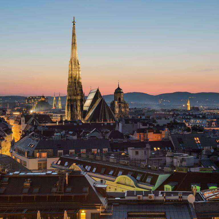 Vienna, the former Habsburg capital, is one of Europe’s leading cultural cities, offering a stunning blend of imperial history, music, and architecture. Highlights include the Belvedere, Karlskirche, Musikverein, Hofburg, Stephansdom, and the grand Ringstrasse boulevard.